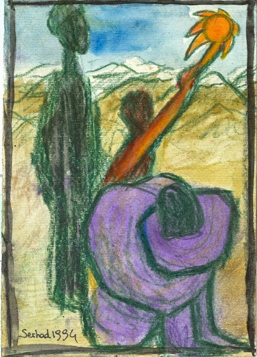 | Xençer û qelem, 2014, rengên akrilik, 21x30 cm |